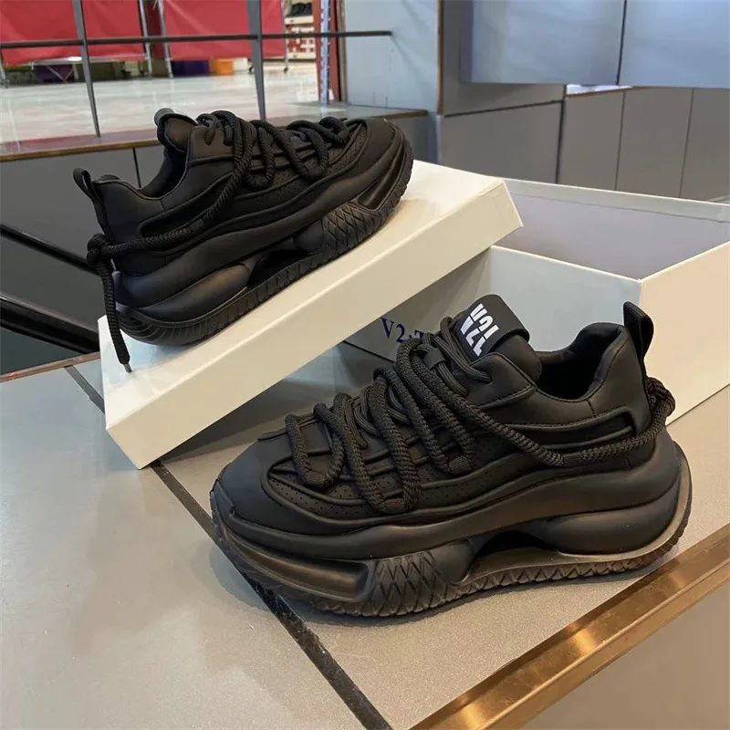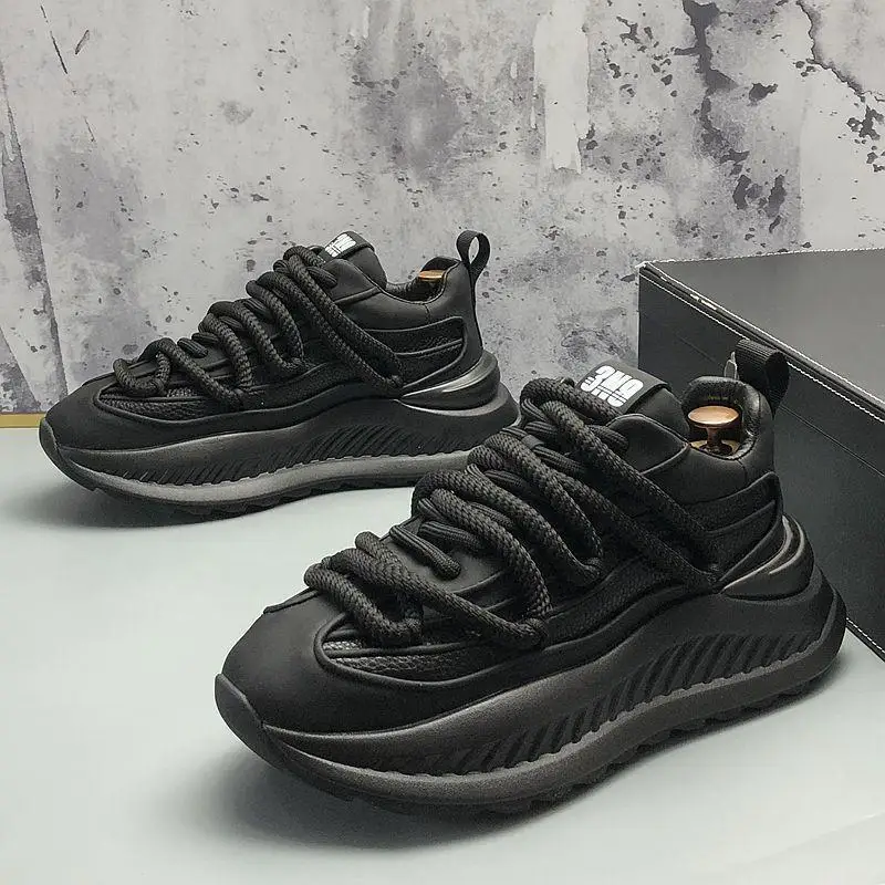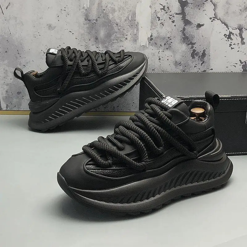 Solid Color Casual Shoes Mens Versatile Thick Soled Light Height Increasing Wear-resistant and Trendy Sports and Leisure Shoes